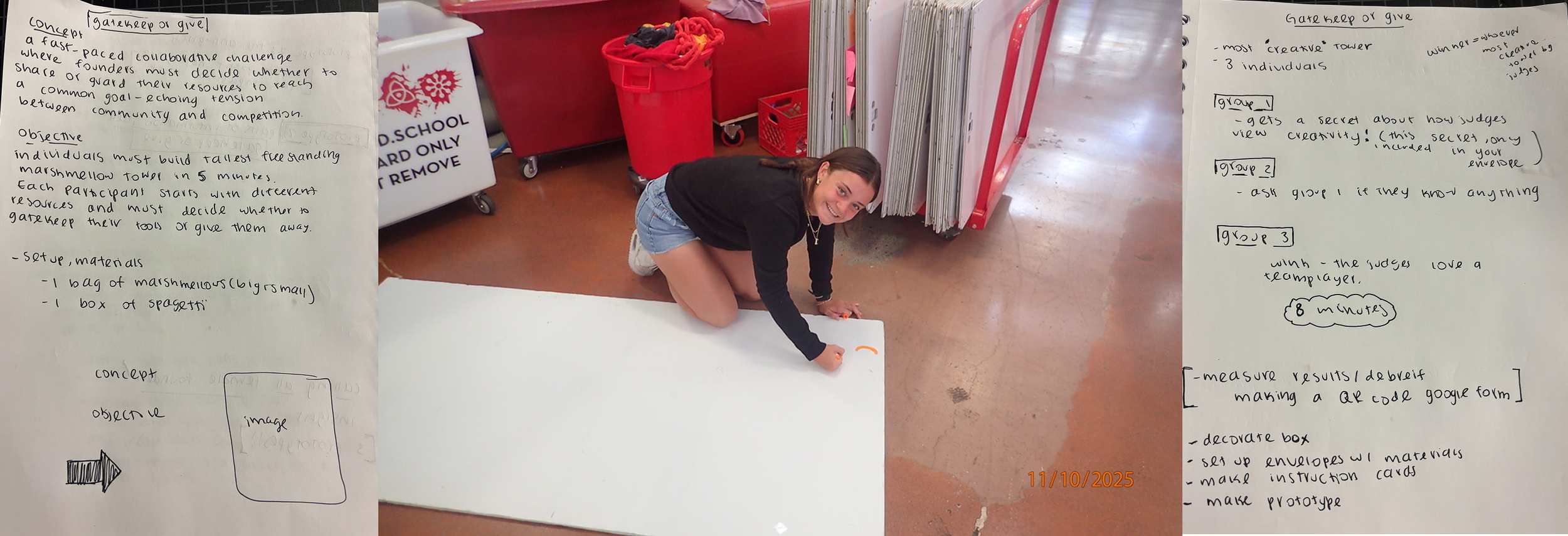 Midway through the project, we held 'Prototype Experience Day' at the d.school, where 40 founders tested our prototypes. Preparing for this, we created three different prototype ideas. I will focus on the one I developed individually. These prototypes were designed to test insights, not serve as final products.